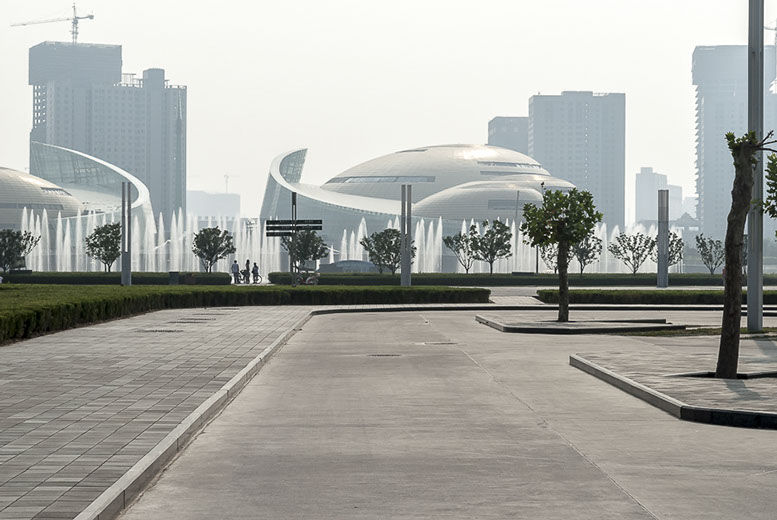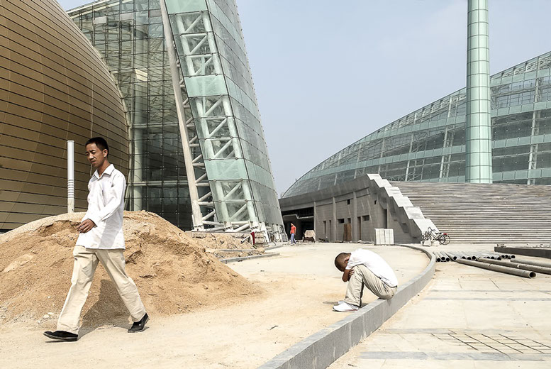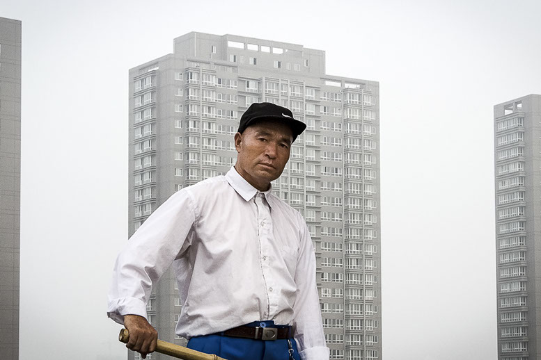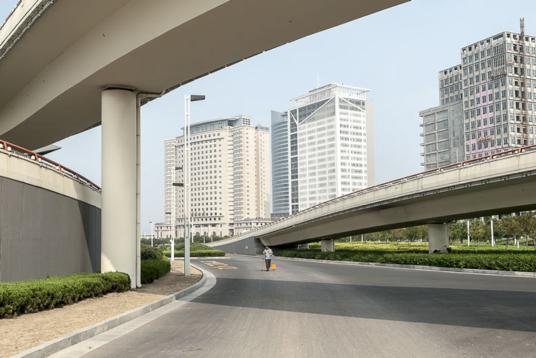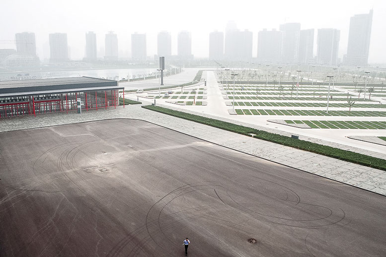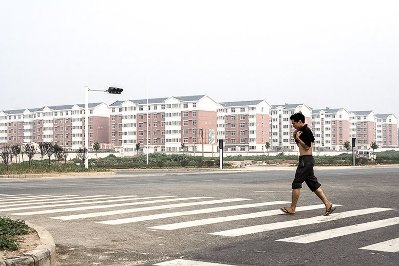 Cette série présente l’atmosphère des cités nouvelles construites autour des grandes villes chinoises, ici Zhengzhou et Laoyang, dans la province du Hénan. De grandes constructions vont accueillir des centres d’art, des centres d’expositions, des stades et surtout des logements pour une immense population venue des campagnes. Les rares silhouettes qu’on y croise donnent l’impression d’une cité morte avant d’avoir vécu, à l’opposé de la convivialité des Hu Tong détruits les un après les autres dans les centres-ville.